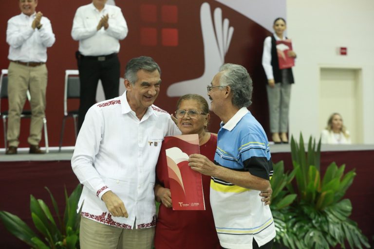El gobernador Américo Villarreal Anaya presidió la ceremonia de entrega de 1,500 escrituras que...