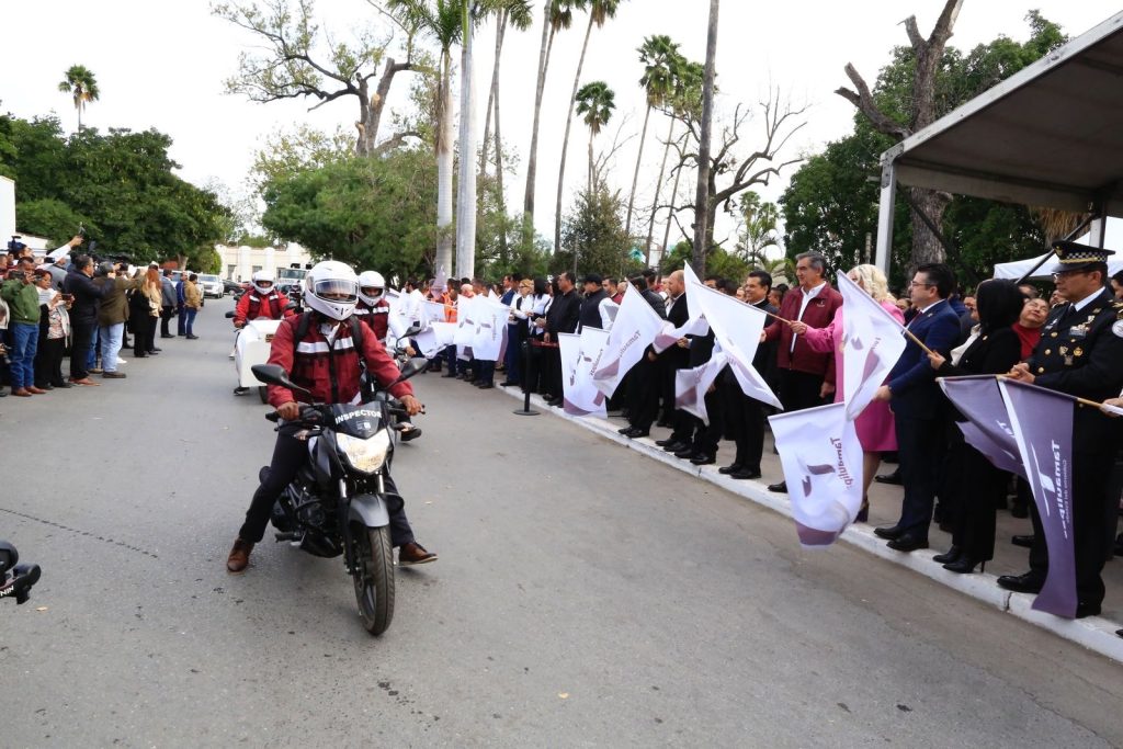 Junto al presidente municipal de Victoria, Eduardo Gattás Báez y en el marco de la ceremonia cívica de honores celebrada en el paseo Pedro José Méndez, de esta capital, el gobernador de Tamaulipas entregó equipo de barrido,11 motocicletas, dos motocarros, de bajo consumo de combustible, tres camiones de basura modelo 2023 y dos camiones recolectores de basura modelo 2024, además de un camión de bomberos donado al municipio y otro camión compactador de basura entregado por Petróleos Mexicanos al ayuntamiento.