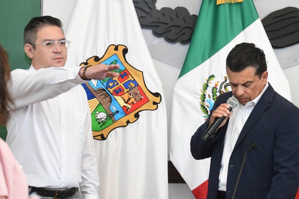 En base al artículo 59 fracción IV del Código Municipal, propuso al cuerpo colegiado ser sustituido en las funciones inherentes al cargo por el regidor Hugo Galván Ibarra, a quién tomó protesta de ley con el aval de todos los integrantes del Cabildo local.