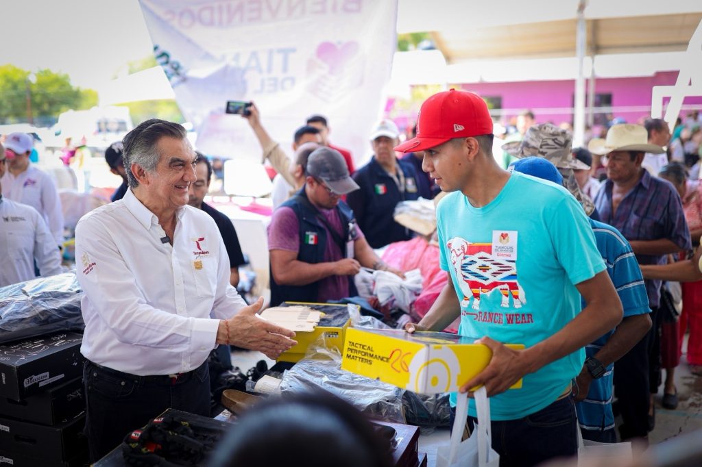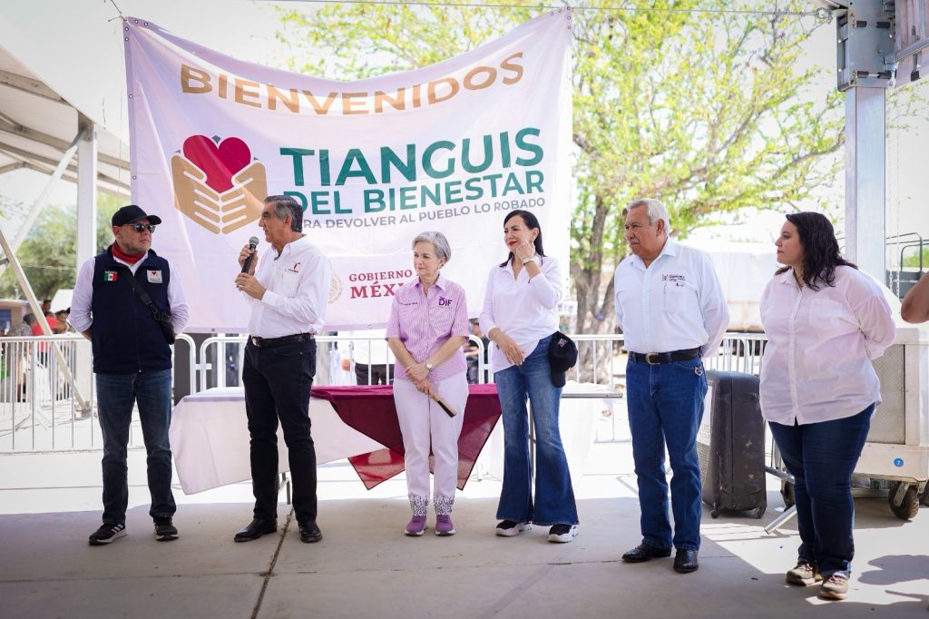 Güémez, Tamaulipas. En un ambiente de fiesta y alegría en esta cabecera municipal, el gobernador del Estado, el doctor Américo Villarreal Anaya y la presidenta del DIF Tamaulipas, doctora María de Villarreal, pusieron en marcha los Tianguis del Bienestar junto al comisionado de acción de esta estrategia Sergio Gutiérrez Nava, quien asistió además como representante del Gobierno Federal.
