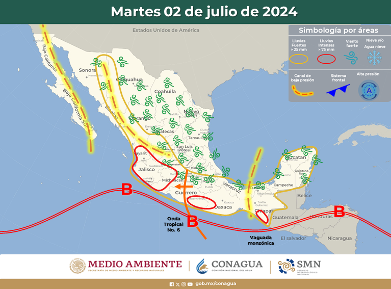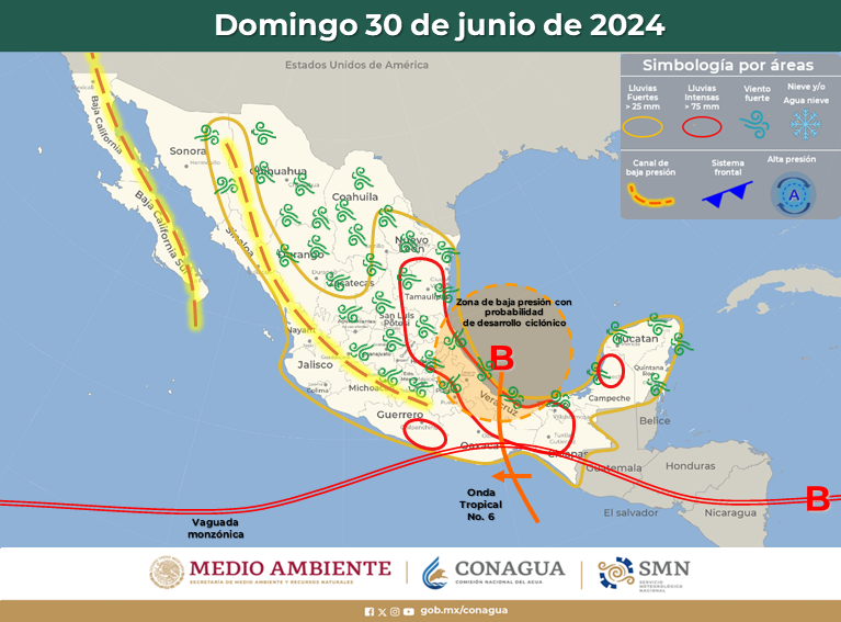 Próxima emisión del pronostico del tiempo: 14:00 horas del día 30 de junio de 2024.