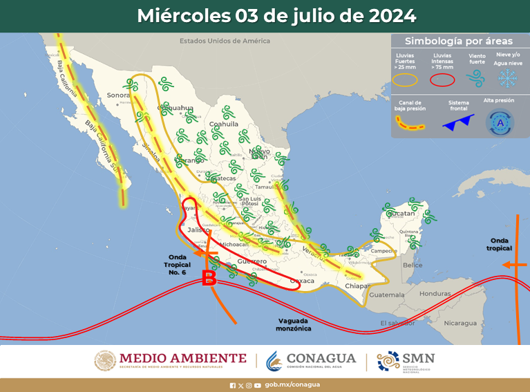 - Temperaturas máximas de 35 a 40 °C ☔️ Miércoles 03 de julio: