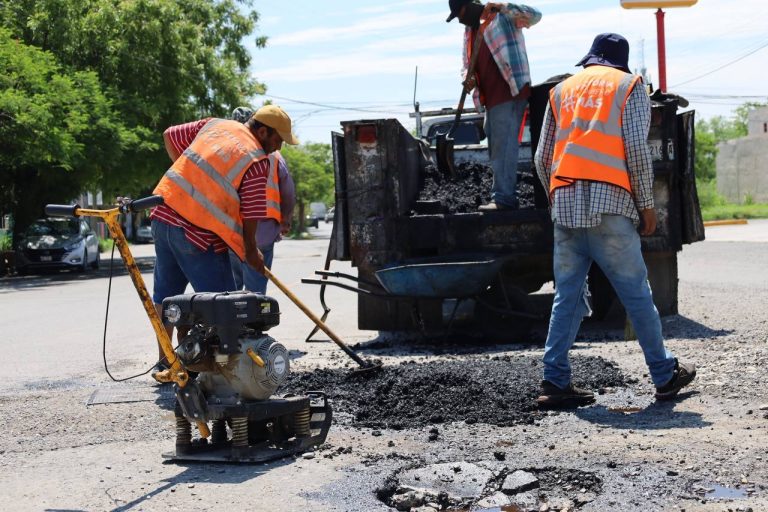 Con la aplicación superficial de material reciclado, personal de la Secretaría de Obras Públicas...