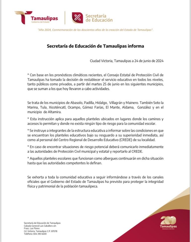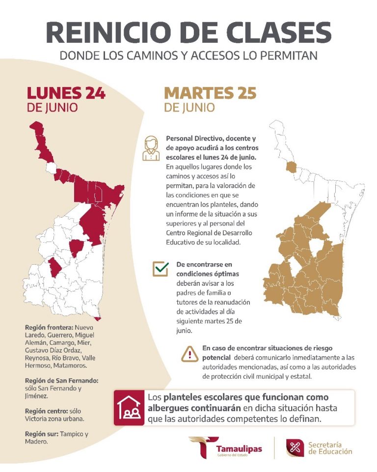 La Secretaría de Educación de Tamaulipas informa que: • Con base en los pronósticos...
