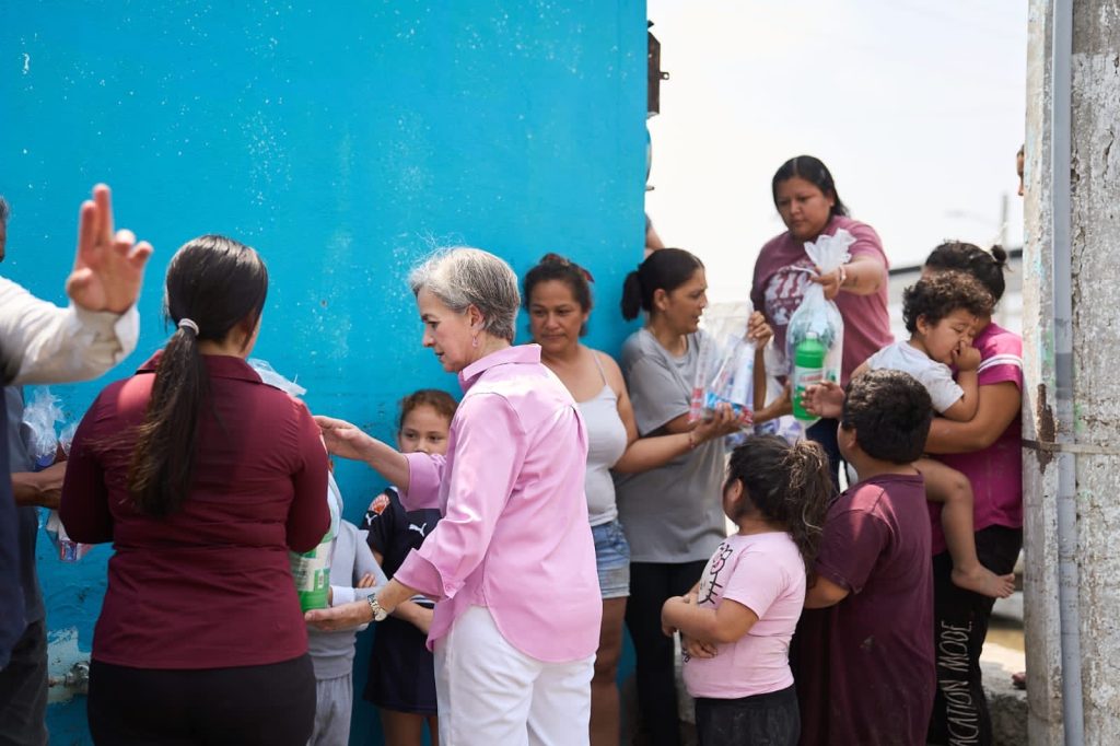 Reynosa, Tamaulipas.- La presidenta del Sistema DIF Tamaulipas, la doctora María de Villarreal, realizó un recorrido por los sectores afectados por lluvias e inundaciones en la ciudad de Reynosa, donde entregó paquetes de limpieza para el hogar e higiene personal, a fin de apoyar a las familias damnificadas en el restablecimiento de sus condiciones de bienestar.
