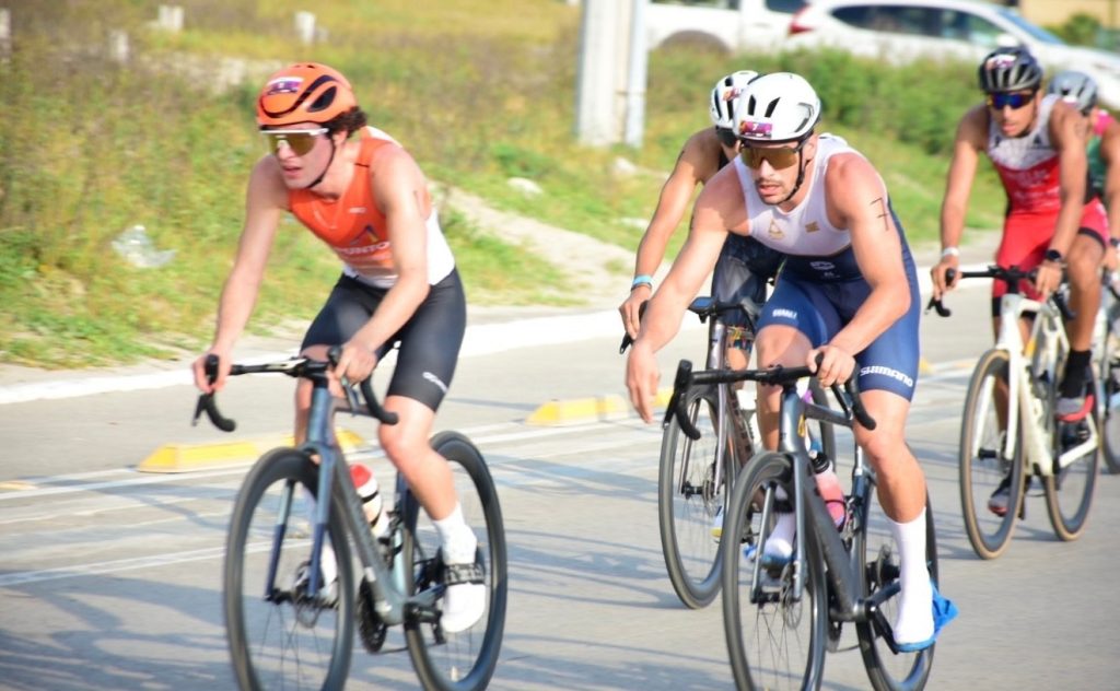 En Triatlón Olímpico (individual y relevos), las distancias son: Natación 1,500 m; Ciclismo 40 kms. y Carrera 10 kms.