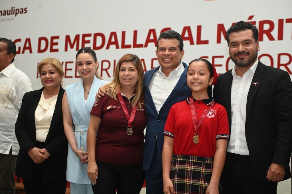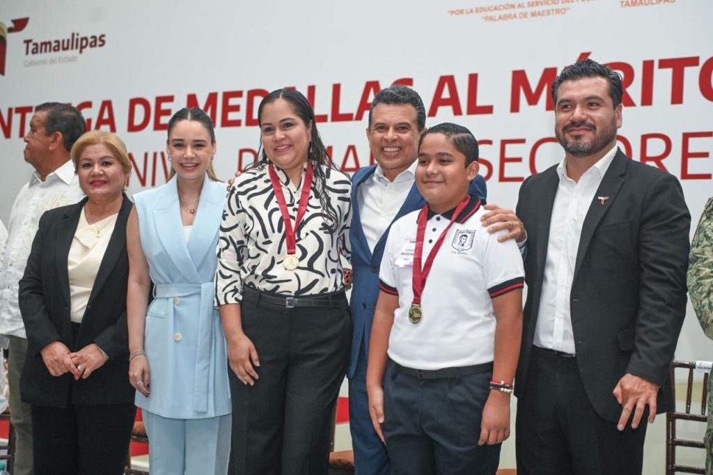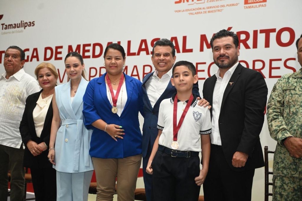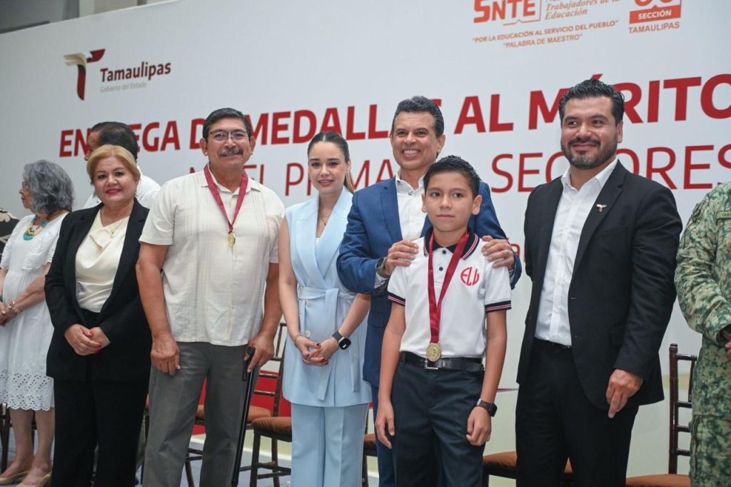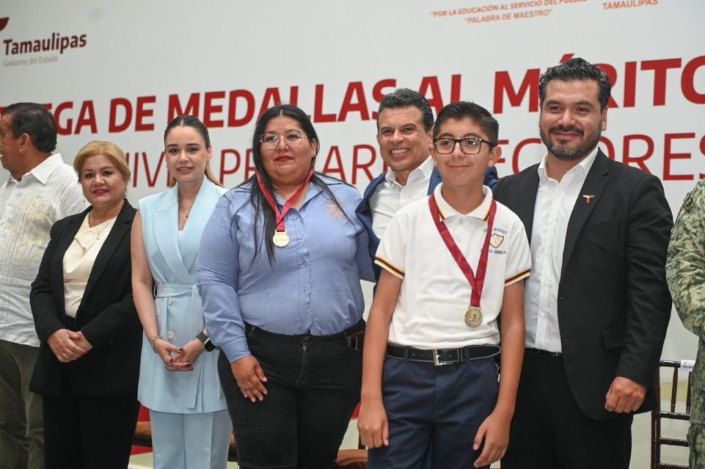 Ciudad Victoria, Tamaulipas -El presidente municipal, Eduardo Gattás Báez, y su esposa Lucy de Gattás, impusieron la medalla al mérito Guadalupe Victoria que otorga el Gobierno Municipal a 163 alumnos de nivel primaria que, con dedicación y constancia, alcanzaron la excelencia educativa.