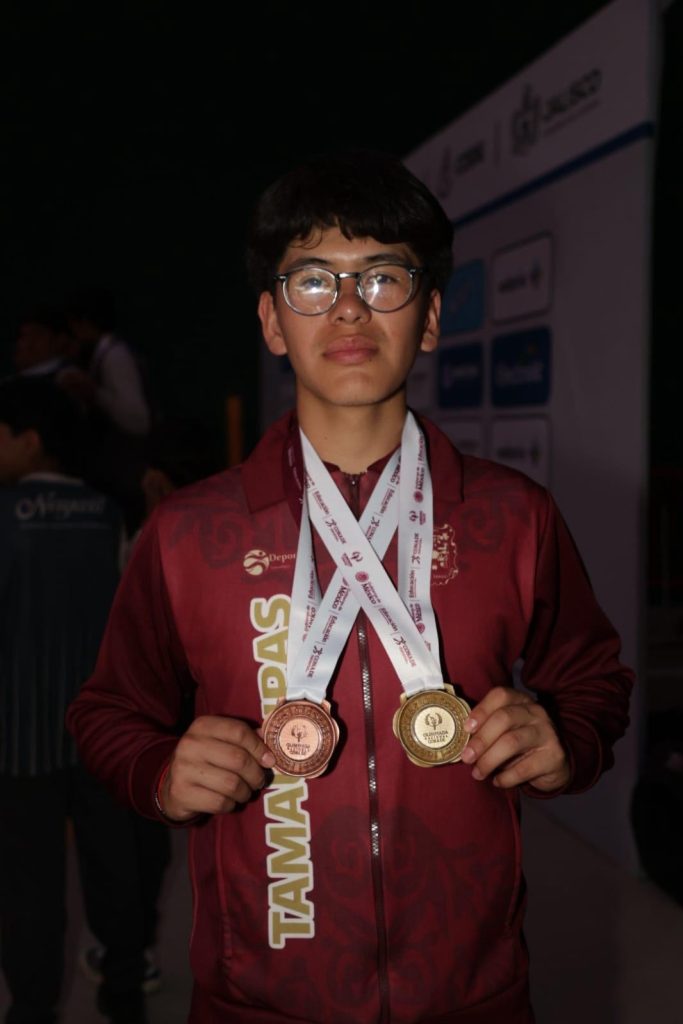 En esa misma categoría, Irvin Espinoza Hernández repitió medalla al conseguir el tercer lugar en frontenis individual. Finalmente, Carlos Alberto Marín Peña, oriundo del municipio de Nuevo Laredo, logró la medalla de bronce en la modalidad de paleta goma individual en la categoría Juvenil C varonil.
