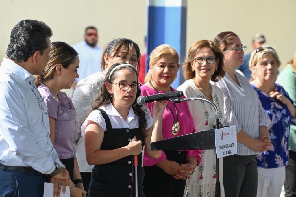 En apoyo a la educación inclusiva, el presidente municipal de Victoria, Eduardo Gattás Báez, y la presidenta del DIF Lucy de Gattás, inauguraron 11 rampas para personas con discapacidad en la escuela Secundaria General N° 4 Profr. José Santos Valdés Salazar.