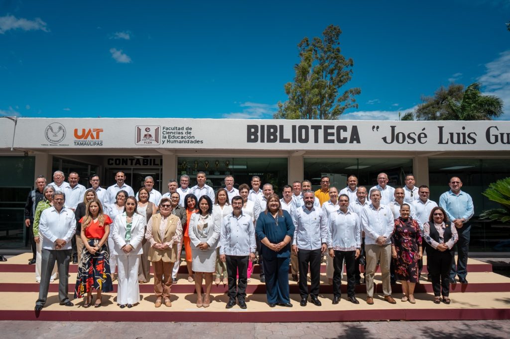 Cd. Victoria, Tamaulipas – El Rector Dámaso Anaya Alvarado llevó a cabo un recorrido por la Facultad de Ciencias de la Educación y Humanidades (FCEH) del Campus Victoria, donde realizó diversas actividades, entre ellas, encabezó la reunión del Colegio de Directores de la Universidad Autónoma de Tamaulipas (UAT), entregó equipo tecnológico de vanguardia y supervisó espacios académicos y deportivos de este plantel universitario.