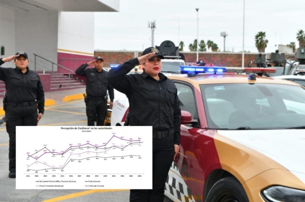 La misma señala que, en el 2022 la percepción de confianza en la entonces Policía Estatal era de un 53.8% mientras que, en el 2023 aumentó a un 61.3% y en el 2024 alcanzó los 62.6 puntos porcentuales.