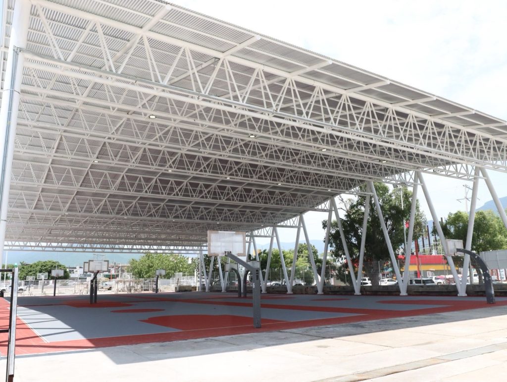 Acompañado por el secretario de Obras Públicas, Pedro Cepeda Anaya, verificó la obra que incluye cimentación a base de pilotes, techumbre con lámina galvanizada, sistema sintético amortiguante anti-impacto, instalación de tableros de baloncesto, casquillos para soporte de postes metálicos de voleibol y luminarias tipo campana con tecnología LED, en las canchas de basquetbol, así como la sustitución del sistema amortiguante de la cancha de voleibol. Esta obra representa una inversión de 21 millones 500 mil 108 pesos.