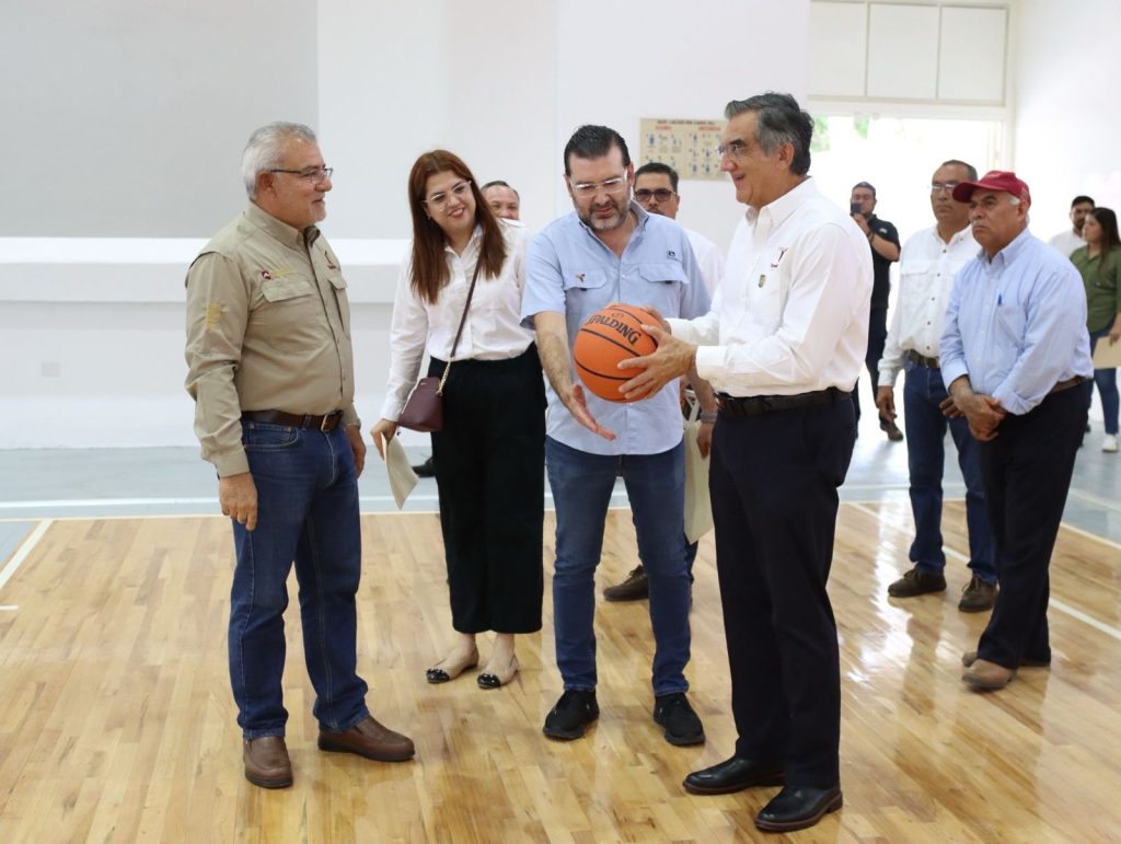 Villarreal Anaya también constató la rehabilitación del gimnasio Manuel Raga Navarro, donde se llevan a cabo acciones diversas como la colocación de duela de maple en cancha de basquetbol profesional, rehabilitación de puertas metálicas y de aluminio, cambio de luminarias, instalación de un sistema de ventilación y extracción de aire, así como aplicación de sistema aislante térmico en la cubierta de lámina en el exterior. Estos trabajos suman un monto de 6 millones 62 mil 764 pesos y tienen un 93 por ciento de avance.