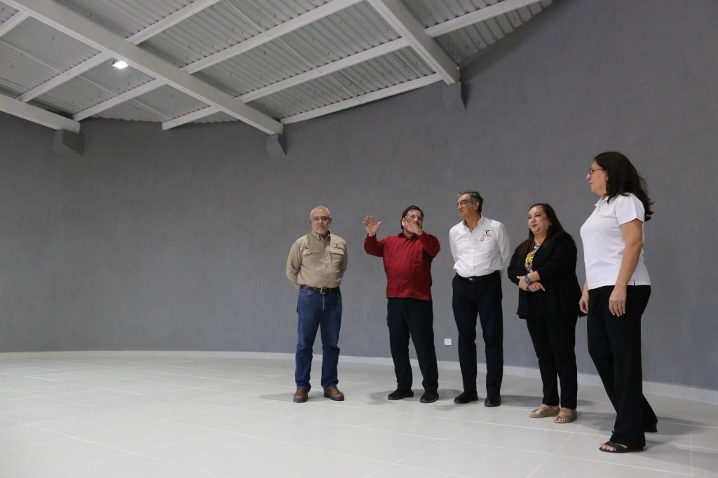 Posteriormente, Villarreal Anaya, se trasladó a la Escuela Normal Federal de Educadoras “Maestra Estefanía Castañeda”, donde, acompañado del secretario de Educación, Miguel Ángel Valdez García, y de la directora del plantel, Albertina Guadalupe Guajardo supervisó los trabajos de construcción del nuevo gimnasio, que contará con gradas, canchas y un foro. Esta obra representa una inversión de 11 millones 992 mil 523 pesos y prácticamente se encuentra terminada.