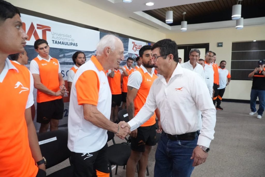 En el evento celebrado en el campus universitario, el rector Dámaso Anaya recibió de manos del capitán del equipo, Daniel Cisneros, la nueva camiseta representativa del conjunto, en un acto simbólico que marcó el inicio de una nueva etapa para el club que representa con orgullo los colores de la UAT.