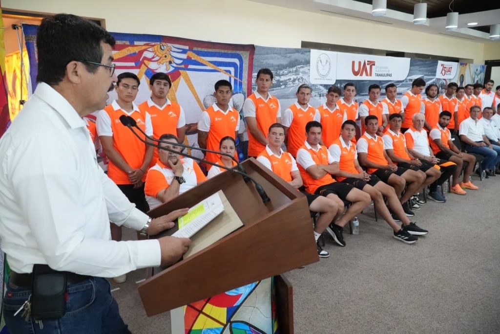Durante su mensaje, el rector expresó su entusiasmo por esta nueva etapa del conjunto universitario, subrayando que este proyecto representa el espíritu, la identidad y el compromiso de la comunidad UAT. Destacó que el deporte forma parte esencial de una educación humanista, al fomentar valores como la disciplina, el trabajo en equipo y la responsabilidad. Reconoció el resurgimiento del equipo en el torneo anterior y el impulso renovado con el que afrontan esta nueva temporada, integrando juventud, experiencia y una mentalidad competitiva.