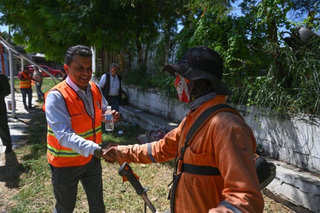 Ciudad Victoria, Tamaulipas- Junto con personal de Servicios Públicos del Municipio, el alcalde de Victoria, Eduardo Gattás Báez, visitó la colonia Estudiantil para rehabilitar el área verde y deportiva, con el fin de fomentar la convivencia social en este periodo vacacional.