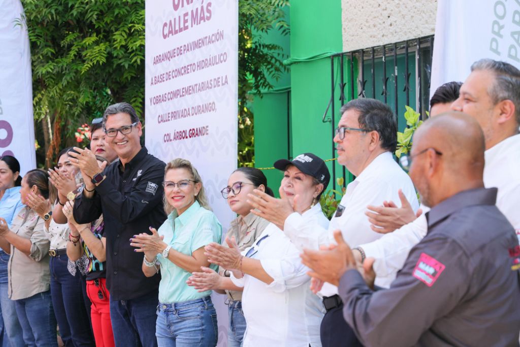 Posteriormente, se trasladaron al sector Arboledas para dar el banderazo de arranque a los trabajos de pavimentación a base de concreto hidráulico de la calle Privada Durango con una longitud de 144.65 metros lineales y una inversión de casi 5 millones de pesos de Gasto Corriente, contemplándose también obras complementarias.