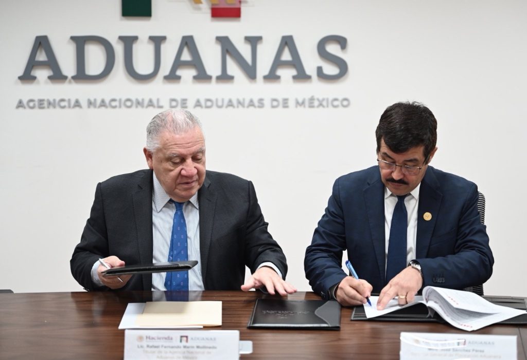 El rector de la Universidad Autónoma de Tamaulipas (UAT), Dámaso Anaya Alvarado, y el titular de la Agencia Nacional de Aduanas de México (ANAM), Rafael Marín Mollinedo, firmaron un convenio de colaboración que permitirá a la casa de estudios fortalecer la formación aduanera y técnica de las nuevas generaciones y consolidar su papel como puente entre la educación superior y los sectores estratégicos del país.