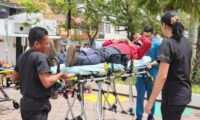 El director de Protección Civil, Ricardo Aguirre Martínez, detalló que “primero ingresó la Brigada de Búsqueda y Rescate por posibles lesionados, se evacuaron, se pusieron en la zona de triage por eso los colores en cada lona y fueron evaluados por personal paramédico de Protección Civil y después se trasladaron”.