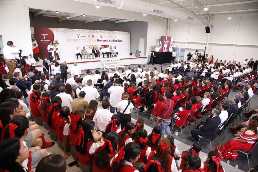 En la ceremonia cívica de honores, ante más de 400 alumnas, agregó que en Tamaulipas la transformación comienza en la escuela, “y a ustedes les corresponde garantizarlo”, afirmó.