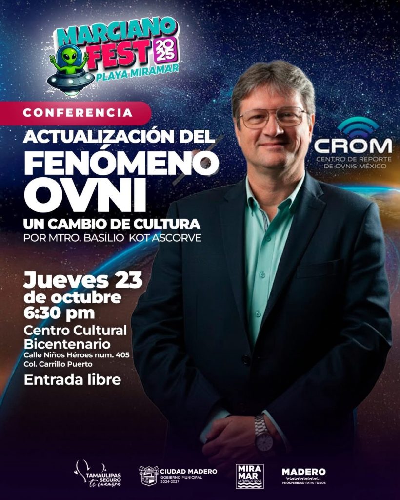 El festival se llevará a cabo del 23 al 29 de octubre en diferentes sedes, incluyendo la Plaza Gobernadores, el Complejo Deportivo de Playa y el Centro Cultural de Ciudad Madero, con una cartelera diversa que integra exposiciones, conferencias, conciertos, actividades deportivas y muestras artísticas relacionadas con el fenómeno OVNI y la cultura popular.