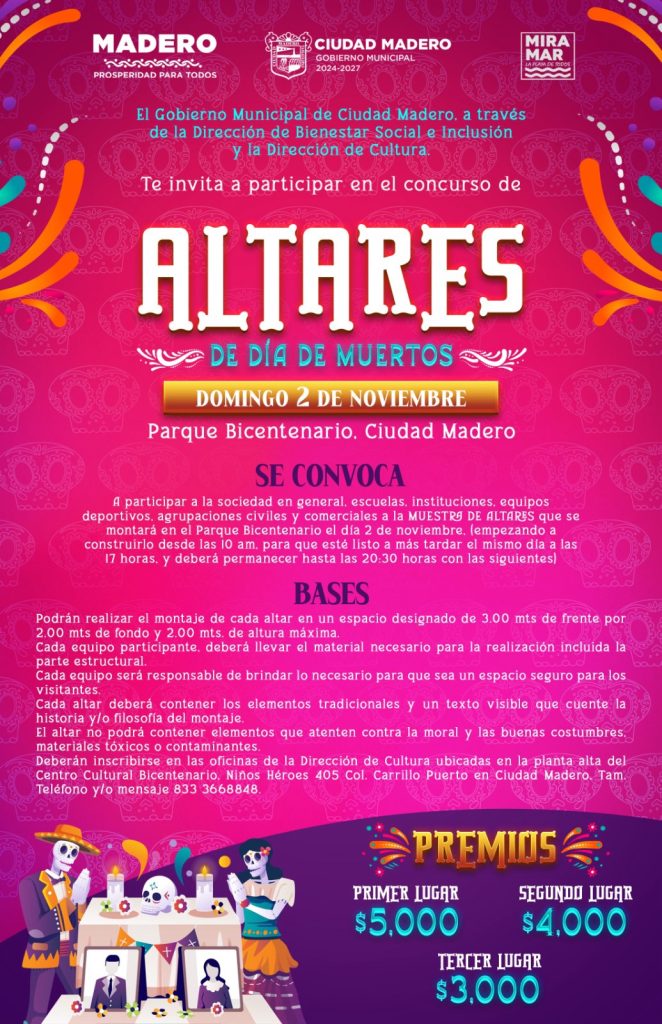 De igual forma, se realizará el concurso de altares, por lo que se convoca a la sociedad en general, escuelas, instituciones, grupos deportivos, agrupaciones civiles y comerciales a participar y en el que se premiará a los 3 primeros lugares.