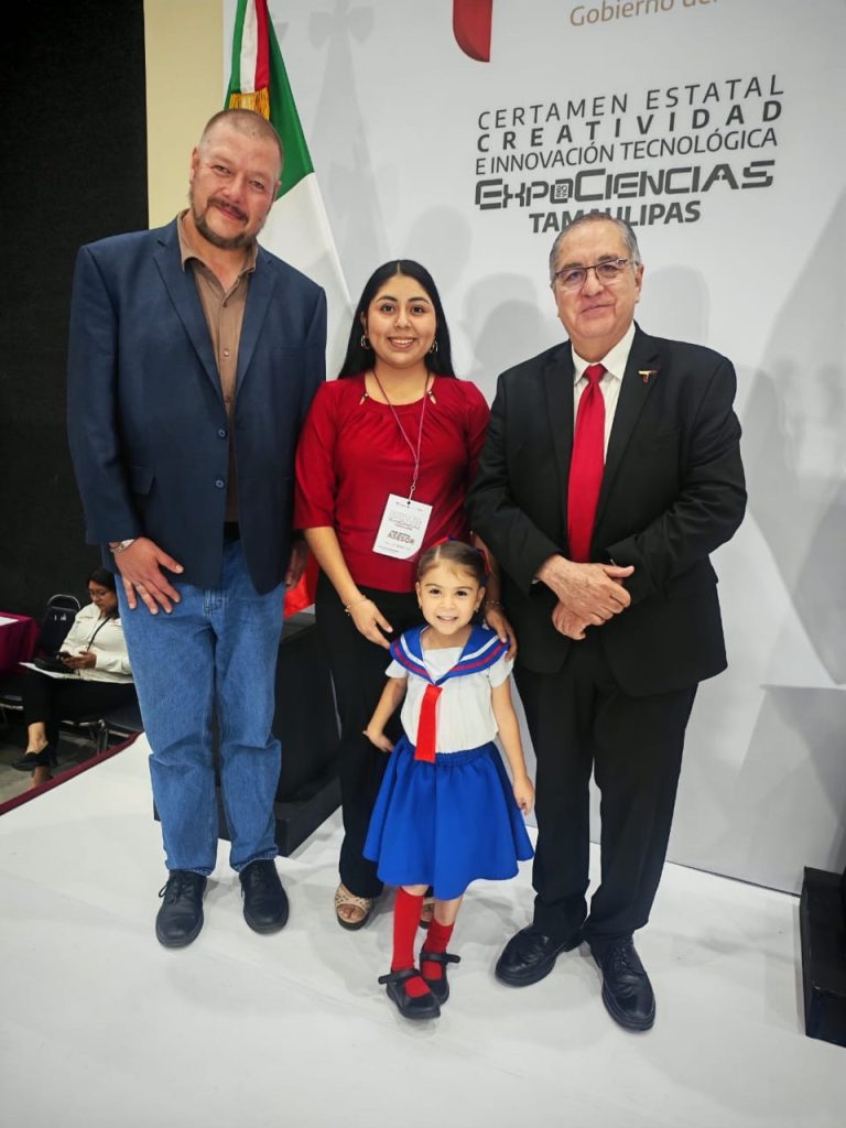 También reconoció a Angélica Gisel de la Torre Segura, estudiante del tercer semestre de la misma carrera, por lograr su acreditación nacional al asesorar un proyecto en la categoría Petit.