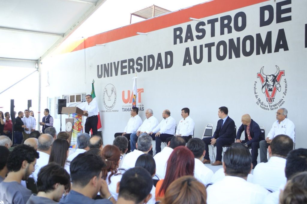 Acompañado por el rector de la UAT, Dámaso Anaya Alvarado, y dirigentes del sector ganadero del estado, el gobernador recibió de manos de Leandro David Soriano García, director general de Inocuidad Agroalimentaria, Acuícola y Pesquera del Senasica, el documento que permite la actividad diaria de la sala de corte y deshuese para la especie bovina, cámara de producto terminado, almacén, empaque y andenes de carga y descarga en el rastro ubicado en la Facultad de Medicina Veterinaria y Zootecnia, en esta capital.