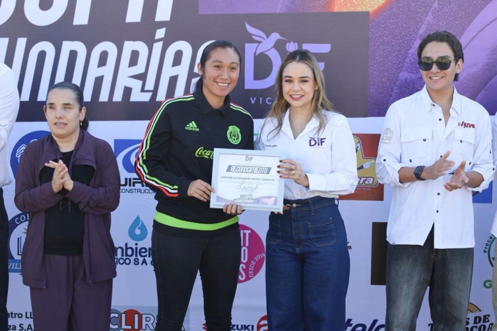 Con la participación de 300 estudiantes, arrancó la 1ª. Copa Unión Intersecundarias 2025, la cual inauguró la presidenta del Sistema DIF Victoria Lucy de Gattás en las instalaciones de Unidad Deportiva Revolución Verde.