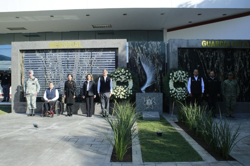 Al término de los honores, se depositó una ofrenda floral y se guardó un minuto de silencio en el Memorial de la Guardia Estatal.