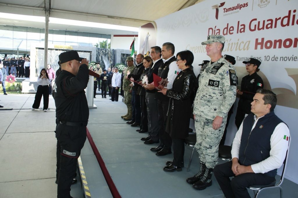 Al presidir la ceremonia cívica de honores en el complejo estatal de Seguridad Pública, en el marco de la celebración del Día de la Guardia Estatal, el gobernador destacó que la presencia de la corporación se puede ver y constatar en las carreteras, en zonas urbanas y en las diferentes regiones de la entidad, «como en una labor diaria, sostenida y continua mejorando nuestros niveles de indicadores de seguridad”, sostuvo.