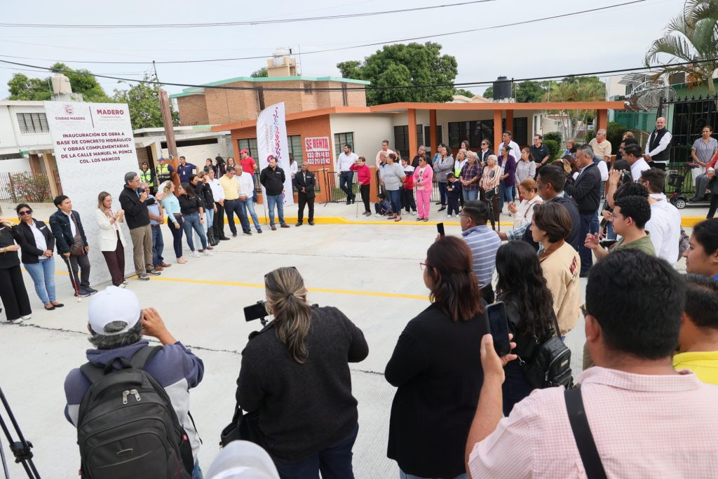 El presidente municipal Erasmo González Robledo, junto a su esposa Dunia Marón Acuña presidenta del DIF Madero, señaló lo anterior durante la inauguración de una calle más, que ahora correspondió en la colonia Los Mangos, con la pavimentación de la Manuel M. Ponce con una inversión de casi 2.9 millones de pesos. Ahí hizo un reconocimiento a las y los vecinos por confiar en las acciones del gobierno de la ciudad, que cumple un nuevo compromiso al dignificar más vialidades.