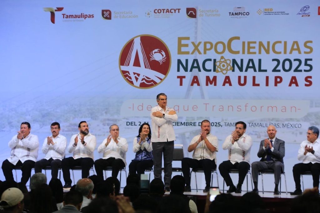 Tampico, Tamaulipas.- Al inaugurar la ExpoCiencias Nacional Tamaulipas 2025, un encuentro que reúne a 1500 participantes con los 500 mejores proyectos de ciencia, innovación y tecnología, elaborados por niños, niñas y jóvenes, el gobernador Américo Villarreal Anaya refrendó todo su apoyo para seguir con la visión de la presidenta Claudia Sheinbaum y poner el conocimiento y el avance científico a favor del bienestar social.