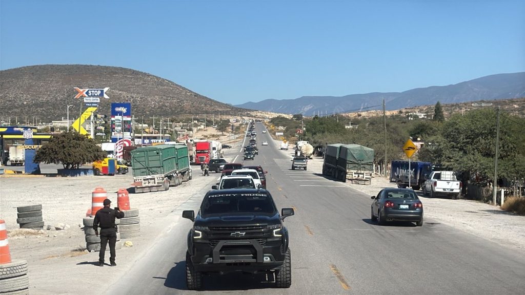 En ese punto, la caravana fue recibida por autoridades de la Fuerza Civil del estado de San Luis Potosí y la Guardia Nacional, quienes continuaron con el acompañamiento en la entidad vecina.