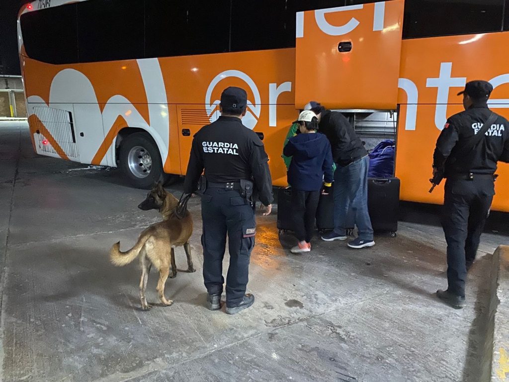 Ciudad Victoria, Tamaulipas.– Como parte de las acciones de prevención y disuasión del delito, personal de la Dirección de Agrupamientos Policiales de la Guardia Estatal lleva a cabo un operativo de inspección en la Central de Autobuses, con el apoyo de un binomio canino especializado en la detección de narcóticos.