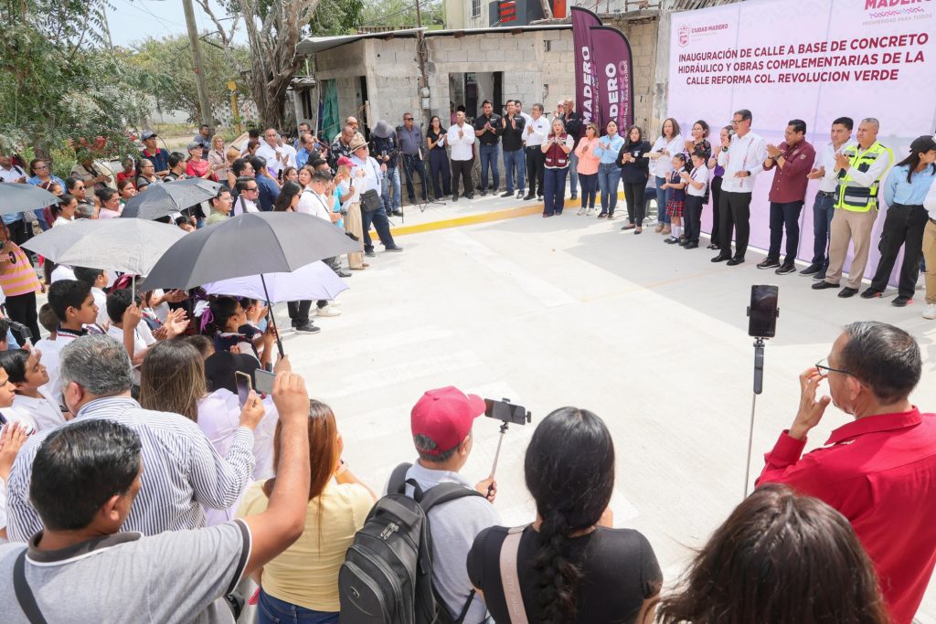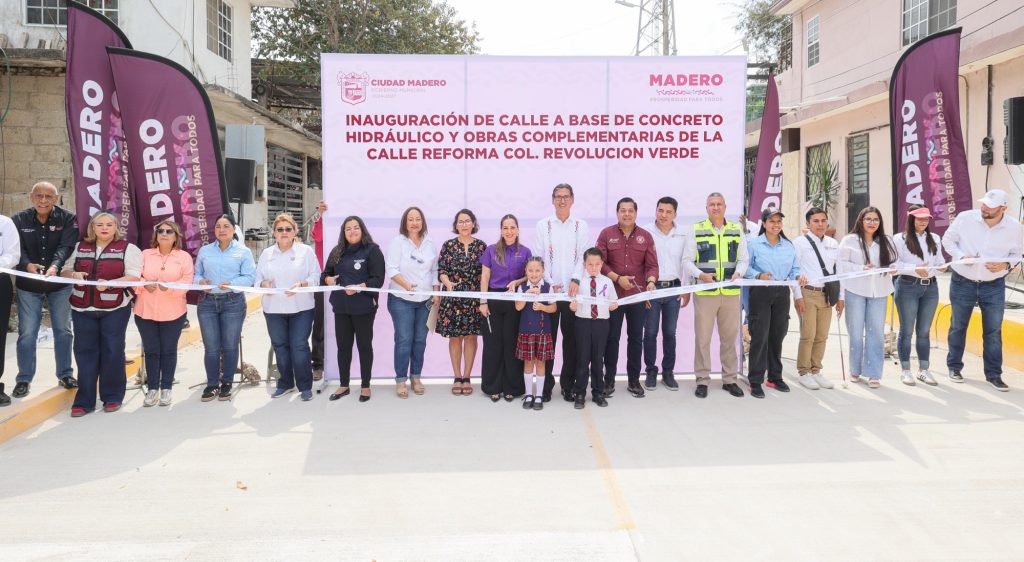 “Ciudad Madero trabaja junto al gobernador Américo Villarreal Anaya para seguir avanzando al doble en la transformación en infraestructura vial”, destacó el presidente municipal, Erasmo González Robledo, al encabezar la inauguración de la pavimentación de la calle Reforma en la colonia Revolución Verde, una obra con una inversión de casi 6 millones de pesos con una longitud de mas de 300 metros lineales, que fortalece la movilidad urbana y responde a una petición histórica de las familias de este sector.