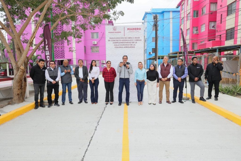 Como parte del impulso permanente al mejoramiento de la infraestructura urbana en Ciudad Madero, el presidente municipal, Erasmo González Robledo, inauguró la pavimentación a base de concreto hidráulico y obras complementarias de la calle Privada Durango, en el fraccionamiento Arboledas, reafirmando el compromiso de su administración con el desarrollo y bienestar de las familias maderenses.