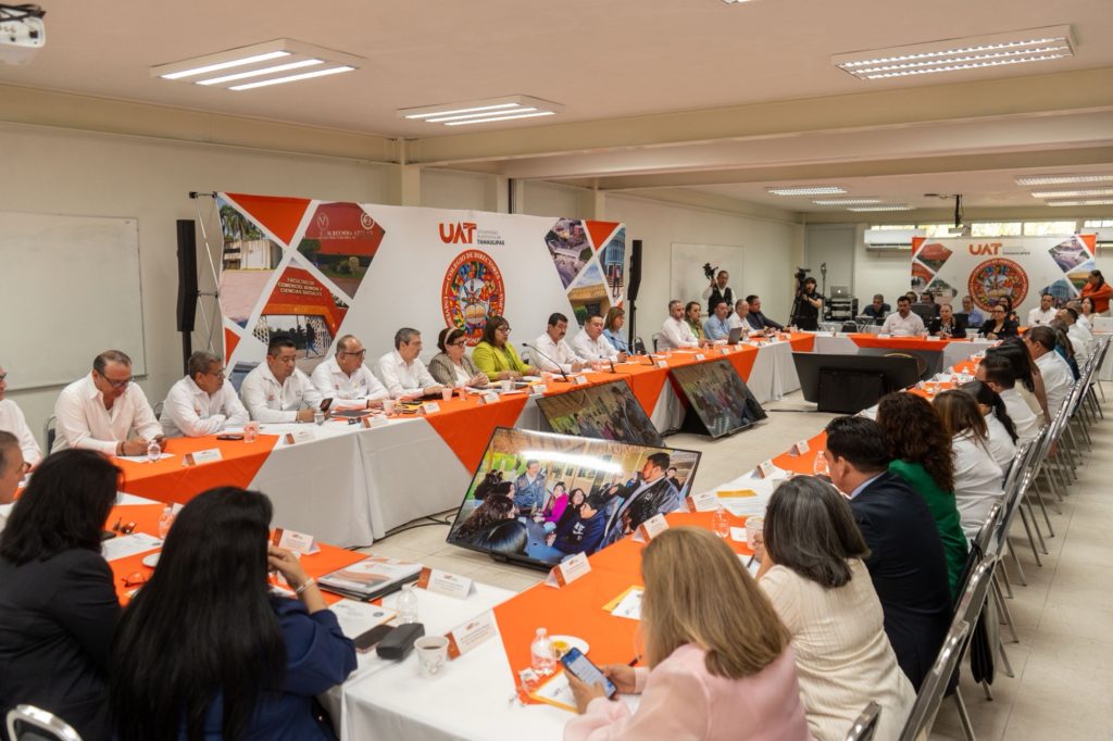 Durante la sesión, desarrollada en la Facultad de Medicina Veterinaria y Zootecnia, el rector destacó que el rumbo de la UAT se construye con orden, visión y responsabilidad compartida, luego de dar seguimiento a la agenda de trabajo de este cuerpo colegiado que integran las directoras y directores de las 27 facultades, unidades académicas y escuelas preparatorias de esta casa de estudios.