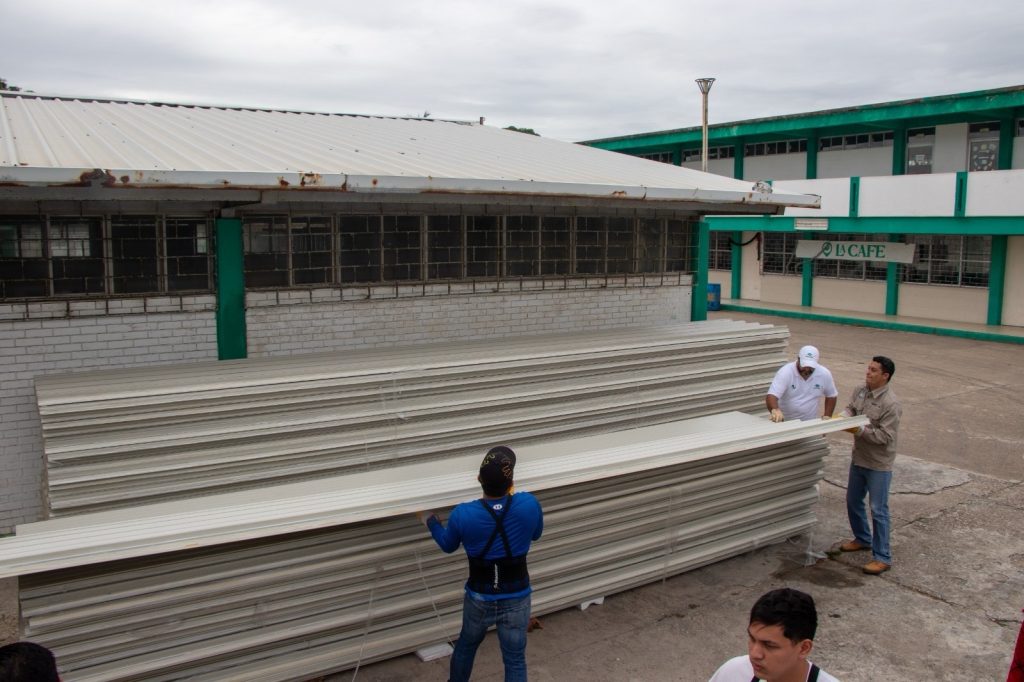 Explicó que los trabajos incluyen el desmantelamiento del techado anterior, el mantenimiento de vigas estructurales y la instalación de un nuevo techado con panel tipo econotecho, material que ofrece mayor resistencia y mejores condiciones para el desarrollo de las prácticas académicas.