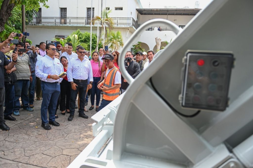 “Se trata de dar mejores resultados y seguir generando una ciudad más limpia, más ordenada y más digna” señaló Gattás Báez al poner en operación la unidad, junto a su esposa Lucy de Gattás, el secretario del Ayuntamiento Hugo Reséndez Silva, y titular de Servicios Públicos Carlos Charles.