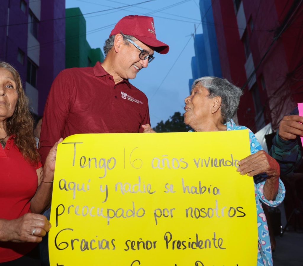 Durante el evento, vecinas y vecinos compartieron su alegría a través de carteles al ver transformados sus hogares después de años sin mantenimiento, resaltando que ahora cuentan con un entorno más agradable, limpio y seguro para sus familias.
