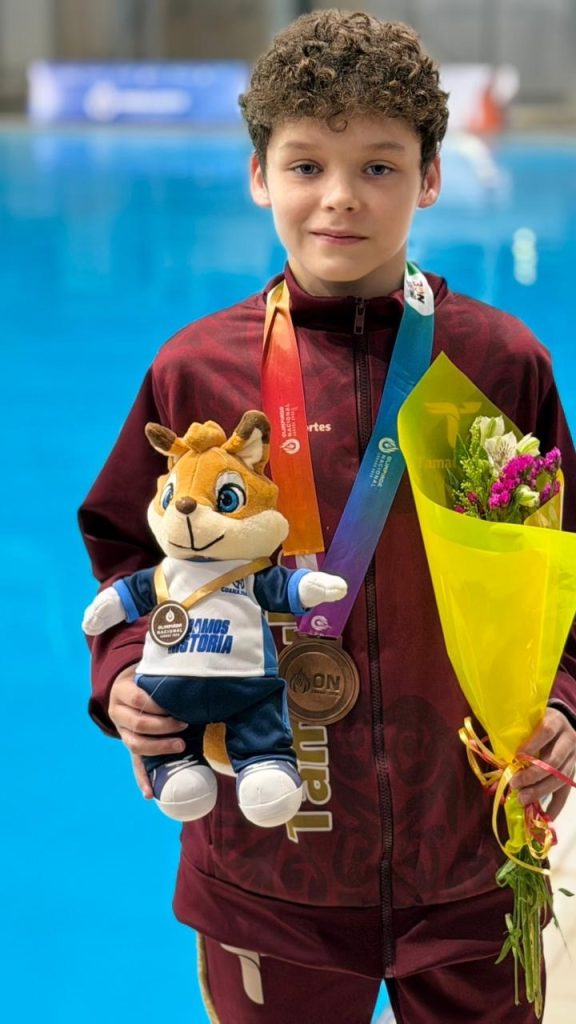 Además, este viernes la entidad sumó dos bronces en clavados, disciplina que se desarrolla en Guanajuato. Arantza Valentina Ruiz Vázquez subió al podio en Trampolín 1M, categoría Damas Grupo “C”, bajo la dirección de su entrenador Paol Aldo Martínez Espinosa.